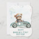 Racerbarn Björn 1-års födelsedag, utskrivbart racerbilsparty, redigerbar pojke som kör bil, Personlig björn 2-årsdag, utskrivbar racerbilsmall - Akvarell Racerbilsbjörn Baby 1-årsdag, ALDER