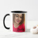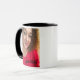 Mugg med svart inre fodrar och handtag och foto av Rachel Dolezal.