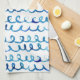 Räcka den målade blåttvattenfärgen vågigt mönster kökshandduk
