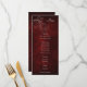 Det här är en snyggt, en rik tittar bröllop-meny med texten i silver grått på en elegant med röd toningsbakgrund. Söt silver-snurrar avslutar utanför inbjudningens framsida. Kortets baksida är samma burgundröd. Det här kortet matchar "Elegant Red Silver Monogram bröllopsinbjudningar" i min butik, men är tillräckligt elegant och mångsidig för att kunna användas vid en formell middag i tillfälle.