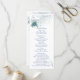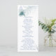 Helt enkelt elegant vackert bröllopsprogram med en fågelfjäder som är gjord i blått och grönt som ser ut som glitter på en vit bakgrund. Baksidan upprepar mönster med ett område där du kan infoga fotot. Anpassa enkelt texten efter eget val.