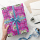 Den här inslagningen av pappra grått-tvättar har en bakgrund av mörkens rosa, blommor i ljus rosa abstrakt, snurrar och retrostjärnor.