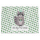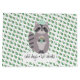 This delightful raccoon is ready for cold winter days with his green knit hat and favorite hot beverage. The background is a pattern of green holly with red berries. The text "cold days•hot drinks" can be personalized by adding your own text or a name.