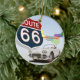 Route 66 med vit Chevrolet Corvette 1961 och linje med stater för att visa var vägen springa går. Den här ikoniska vägen springa Öster till Väster från Chicago, Illinois till Santa Monica, Kalifornien. Även om Route 66 i sig inte längre finns tekniskt sett, är cirka 85 procent av det fortfarande körbart än i dag!