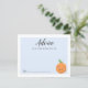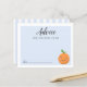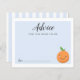 Ett kort för handduschråd med lustiga handledsbilder av en orange frukt med ett leende. Den här blå designen är perfekt för en pojkdusch.