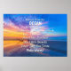 "Råd från oceanen" citerar i svart på ett vackert, reflekterande himlar vid dusk på stranden med silhuett av drivträ. Blått, rosa och gult himlar med reflexion i havets vatten. Foto från Beaufort, SC-området och digitalt förbättrad.