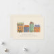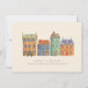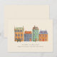 Semesterkort, en rad hus med juldekoration på en vinterdag