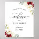 Röda Vit ros Blommigt Bröllop Advice och Brunn Önskemål-skylt Poster. (1) Standardvärdet är 8 x 10 tum. Du kan ändra storleka till en större. (2) Om du vill göra ytterligare anpassningar klickar du på länken "anpassa ytterligare" och användor verktyg som är utformat för att ändra mallen.