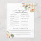 Kort för råd och förutsägelser om babydusch med vattenfärgade löv och pumpor. Ett roligt sätt att interagera med gäster under barnduschen. Matchar den Rustiska höstsamlingen i Adore Papper Co Zazzle Shop.