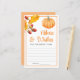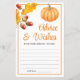 Fira kärlek och skratta med vårt råd och Önskemål Fall Pumpkin Möhippa Game! Det här spelkortet är en charmerande automatisk illustration med pumpor, löv och mysiga falltoner och ger säsong värme till din möhippa medan ge gäster får en chans till hjärtliga råd och gott önskemål för den blivande bruden. Funktioner: -Bekvämt falltemat design med pumpor och detaljrikedom; -Gäster för skriva personliga råd och sött önskemål; -Perfekt keepve för att bruden ska uppskatta efter duschen, Underbar för fallande möhippor, skördetematerat party eller rustiskt firande En underbar blandning av känslor och säsong charm - gör din möhippa minnesvärd med detta tänkvärda spel.