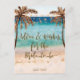 Ett modernt vykort för vattenfärgstranden med havs-, sand-, handflatan-träd och sträng-ljus med handskriven formulering "Råd & Önskemål för den blivande Bride-to-be". vykortet har ett tomt område på baksidan där dam kan skriva sina råd och önskemål. Redigera den fält som visas som och vid behov. Ett underbart tillägg till din möhippa firande och en underbar minnessamling för din blivande brud till behållan.