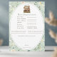 Det här ljuva blommigten är till för en babyduschhändelse, med temat "Nytt kapitel". Låt dina gäster fylla i det här prediktions- och rådgivningskortet som en roligt. Kan hämtas digitalt. Kortet illustrerar en vattenfärgsstapel av blommigt dekorerat bokar och bakgrunden är vilda blommor från vår i mjukt färg. Klassisk gammal engelsk text med stil-typsnitt för en känsla av gamla barn illustrerar bokar.