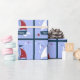 En grafisk utformning av segelbåt, delfiner och fiskmås på papper förpackning. Presentfigursättningen har en mall för din anpassning. Designad av Charmaine Paulson