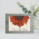 Ett fallbröllop sparar det datum som innehåller en bild på framsidan av en orange solroskikning från överkanten av rektangeln som ramas av barnträbild. Anpassa texten på framsidan och baksidan. Sök efter matchande inbjudningar på Jill's Paperie.com.
