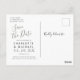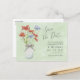 Lantligt vykort för att spara datum med en bukett av akvarell vilda blommor som vallmo, kornblomma och gräs i en vit glaskolv.