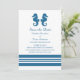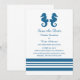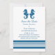 Elegant och klassisk sjöhäst Spara datum meddelande med ett par enkla sjöar och en rad rand i mörkens marinblå och vita. Det här nautiska strandtemat sparar det datum då inbjudan enkelt kan anpassas med dina bröllop-uppgifter. Om du vill ha fler anpassningsalternativ klickar du på knappen Anpassa.