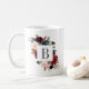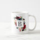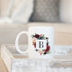 Chic blommigt monogram mugg har ditt första monogram, omgivet av blommor med lush-vattenfärg och grönt i smyckenfärgade nyanser av burgundy marsala, rosa, marblått och eukalyptus grönt.