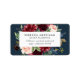 returetiketter för blommigt av chic har en rikens marinblå bakgrund med ditt namn, namn eller titel och returadress som visas på en blommigt med vattenfärg med kluster av rosa, burgundy marsala och marinskt blåa blommor. Perfekt för salonger, stilistorna, makeup artists, event eller bröllopsfixarens, eller något annat företag.