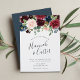 Vår radikant Bloom-bröllopsinbjudan ramar er bröllop-information med en gräns av målade vattenfärger och löv i rik-juveltoner av burgundy marsala, marsala, marshalt, och grönt. Ett modernt men organiskt val i vibrerande färg med lush botanicals och namn i handskrivna bokstäver.