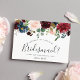 Chic blommigt brudens sida frieri kort med ett överkant gräns av burgundy marsala, rosa och marin blåa blommor, med lush botaniskt löv och grönt. Anpassa till din information om din begäran om mutor (visas med "kommer du att bli min brud? Jag kan inte säga att jag klarar mig utan dig") i moderna handskrivna manus och traditionella sans serif-bokstäver. Inbjudningarna går tillbaka till rik jewel tonad marinblått.