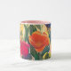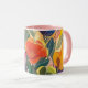 Den här klara illustrationen visar en stiliserad blomkett i fullt. Petter skissas i ett varmt spektrum av färg från djup röd och orange till ljus gult, vilket skapar en pulserande kontrast till coolans grönt och blå löv. Det känsliga linjearbetet tillför struktur och djup, vilket belyser de invecklade detaljerna för varje petal och löv. Den totala sammansättningen utstrålar energi och glädje, som påminner om en trädgård vid toppen av vår.
