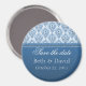 Elegant och sofistikerad Spara datum magneter från Radiant Glam Damask i royal blue. Detta helt enkelt lyxiga mönstrade spara datum magneter är ett roligt och kreativ sätt att informera dina vänner och din familj om det kommande bröllop. Anpassa den här designen genom att lägga till information om din speciella dag! Den här produkten skulle också vara en underbar bröllopsförmån för dina gäster.