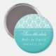Elegant och sofistikerad Spara datum magneter från Radiant Glam Damask i turkos. Detta helt enkelt lyxiga mönstrade spara datum magneter är ett roligt och kreativ sätt att informera dina vänner och din familj om det kommande bröllop. Anpassa den här designen genom att lägga till information om din speciella dag! Den här produkten skulle också vara en underbar bröllopsförmån för dina gäster.
