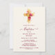 Radiant Golden Sparkle Botanical Cross Christian Baptism Invitation Card Design.
