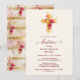 Radiant Golden Sparkle Botanical Cross Baptism Inbjudningar