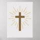 Minimalistisk kristen teckning av ett glättande kor med gyllene ljusstrålar. En kraftfull symbol för tro, hopp och evigt liv - perfekt för Påsk eller daglig inspiration.
