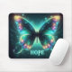 En glödande fjäril med färglöst mönster utstrålar mot en mörk tydlig bakgrund, som förmedlar hopp, skönhet och inspiration genom sin kosmiska aura. En fantastisk symbol för omvandling och magi.