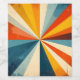 A striking retro-style radial design with sunburst rays emanating from the center in warm and cool tones, giving a vintage feel.