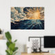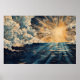Bada i det strålande ljuset av en gyllene soluppgång över havet. Denna lugnande konstverk fångar naturens fredliga skönhet, med solsken som spricker genom moln och reflekterar över vågar. Den här teckningen är perfekt för att du vill lägga till lite lugn i vilket utrymme som helst. Den är en vacker gåva eller en hemdekör för biet.