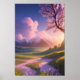 Lägg dig i en solnedgång med Radiant Sunset Sergranat, där en fält av gräs lever med det varma färgen i det fallande sol. Cherry blommar träd får landskapet att rinna över och kastar en mjuk rosa över scenen.