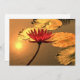 En vacker strålande vatten lily stiger från djupet av en grumlig damm. Inställningen sol återspeglas i vatten och kastar en gyllene glöd som förvandlar en ödmjuk lotus-blomma och dess löv till en lysande bild.