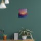 This vibrant poster features an abstract sunrise painting with swirling pinks, purples and golds melting into deep blues - fluid, radiant texture evoking calm energy.