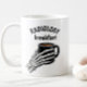 RADIOLOGY breakfast design featuring a skeletal hand holding a coffee mug. An inside joke from imaging culture. A fun, thoughtful mug for radiology staff, radiographers, radiologists, and anyone who works in a radiology department including front desk and clerical teams.