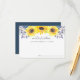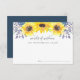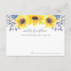 Med hjälp av rådgivningskort för blommigten i land kan möhippans gäster sin ord av visdom för att bruden ska vara. Kort har en överkant gräns av gultens vattenfärgade solrosor och små marinblå knoppar. "Ord av visdom för framtiden, fru kommissionär. [Namn]" visas i det moderna handskrivna kalligrafiskriptet.