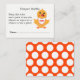 Söt liten chick gult med en babybib på påminner mig om baby bad ankor. Kortets omvända del har mönster av stora prickar i orange och vitt. Lämplig för alla gender flicka eller pojke. En snygg dagstidning för babydusch-raffle biljett som är lätt att anpassa med dina personuppgifter utan kostnad för extra