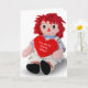 Vintage docka med rött garn för årsdag för make/maka. Text på hjärtat är redigerbar.