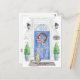 Meddela din ny adress med vår snyggt med en Ragamuffin-katt, blå ytterdörr, välkomstmat, skiffertecken, utopier och en blommigt-krans mot en grått-tegelbakgrund.
