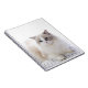 Ragdoll-katt på datorn tangentbord anteckningsbok med spiral