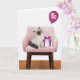 Cute ragdoll kitten med en gåva och rosa party-ballong för 30års födelsedag nummer på ballongen kan ändras.
