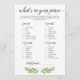 Tittar du att ett spel för roligtar ska spelas upp på möhippan? Gör en väska med de här vackra gröna spelkorten What's In Your Purse! Låt dina gäster titta igenom sin handväska och se om de kan hitta något som matchar listan på korten. Den person som har högst poäng vinner.