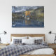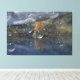 En rendering av en mörk med fokus på kort, regnig dag i ett nordligt bergsglen. I bakgrunden finns grått-brunt backe och en vig träd med gulten höst löv på en ö i en silvrig sjö. I förgrunden är regndroppar frysta mitt i luften, där en i mitten ger den gyllene piskan och dess reflektion en vassare inriktning.
