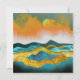 Abstrakt landskapsplats i ett bergsområde med rullande backe och en regnstorm i orange, guld, blått och cyan.