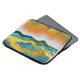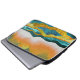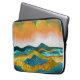 Abstrakt landskapsplats i ett bergsområde med rullande backe och en regnstorm i orange, guld, blått och cyan.