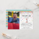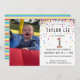 Regnbåge 1:a födelsedag/första födelsedagsfest inbjudan! Med ett foto från barn, party och ett "1" i konfetti, med konfirmcirklar för färgad av roligtens regnbåge som sprider sig uppifrån dessa söta inbjudningskort