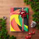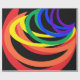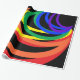 Denna pappra täckningsgrad har en abstrakt med tre dimensioner mönster av regnbågskarp måne i färg med rött, orange, gult, grönt, blått och lila mot svart bakgrund.