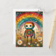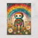 En regnbåge, söt robot i en fält av vildblommans fantasi-AI-genererad konst